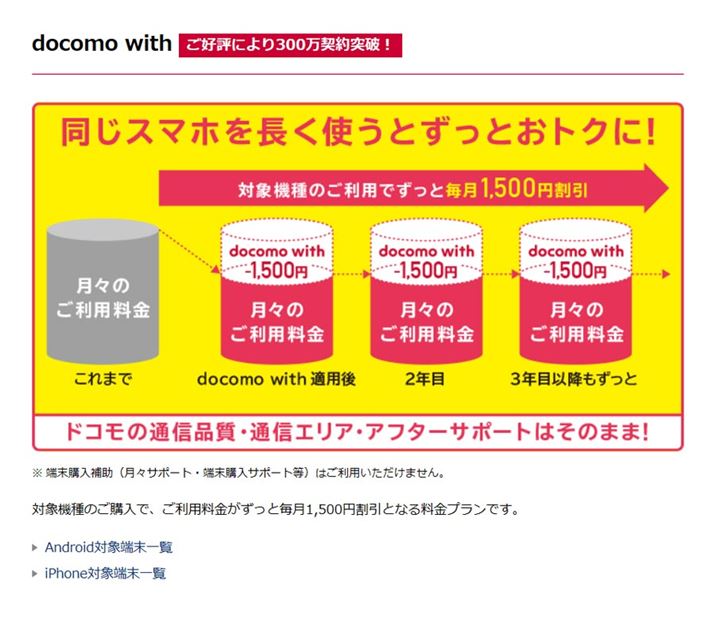 docomo withも端末の購入が条件となることから今回の改正案に抵触してしまいます(画像はドコモのWebサイトより)