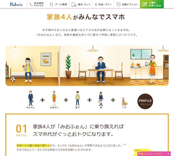 ファミリーシェアプランでは最大5枚の音声通話SIMをまとめられるので、家族でまとめて乗り換えたいときに便利です(画像はIIJmioのWebサイトより)
