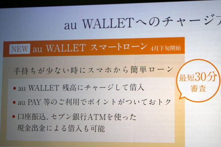手持ちのポイントが少ない場合、ローンでチャージを行う「au WALLETスマートローン」も用意。サービス開始は4月下旬の予定だ