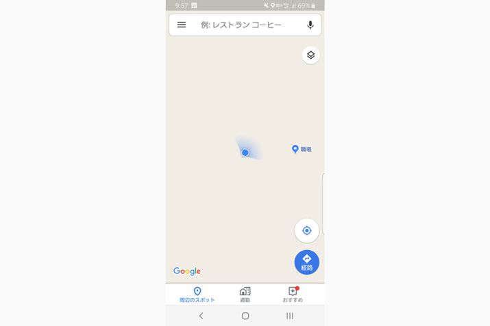 「Googleマップ」で現在地を表示させて約5秒後の様子。新しい場所を表示させるとこの状態が20秒ほど続くこともある