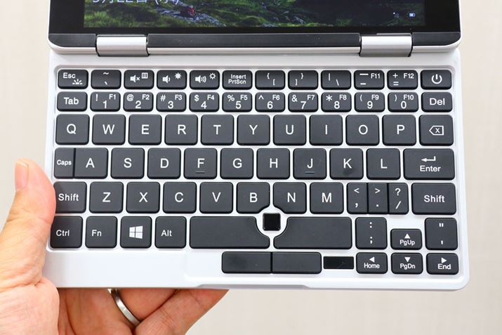 キーボードは、サイズの制約上一部特殊な配列となっている。キーボード面には、光学式のポインティングデバイスやWindows Hello対応の指紋認証センサーなどが搭載されている。