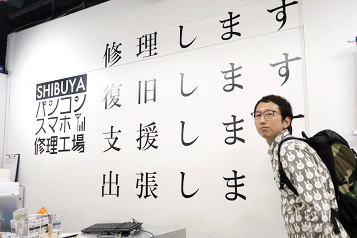こんにちは。ライターの斎藤充博です。今日僕が来ているのは渋谷にあるパソコン修理業者の「渋谷パソコン・スマホ修理工場」です。