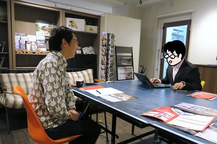 現場で修理をされているカスタマーエンジニアの島さんにお話をおうかがいしました。島さんは恥ずかしがり屋さんなので顔を似顔絵にさせてもらっております。