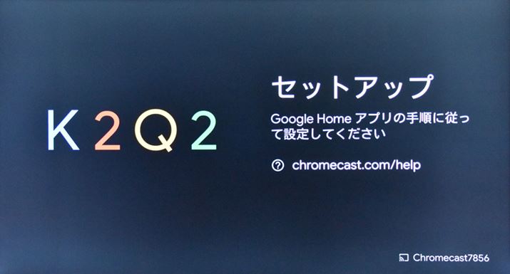 テレビの入力を切り替える。Chromecastの電源をオンにするとテレビに設定画面が表示されるので、指示にしたがう。設定は、Android端末に「Google Home」アプリをインストールし、アプリから行う。