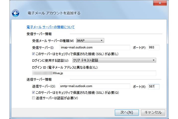 「Outlook.com」にサインインできたら、「Windows Live メール」にMicrosoftアカウントを登録する。ポイントは、「IMAP」で登録することだ。
