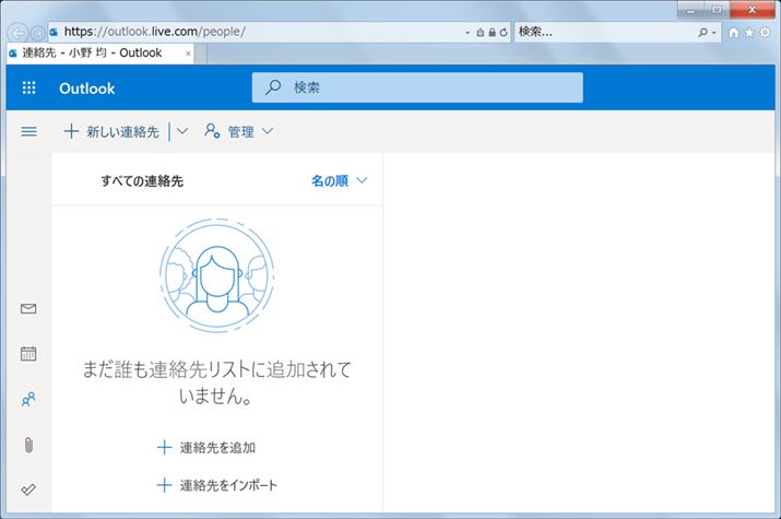 ブラウザーソフトで「Outlook.com」にサインインし、左下の「連絡先」(人型アイコン)をクリック。連絡先が開いたら「連絡先をインポート」をクリック