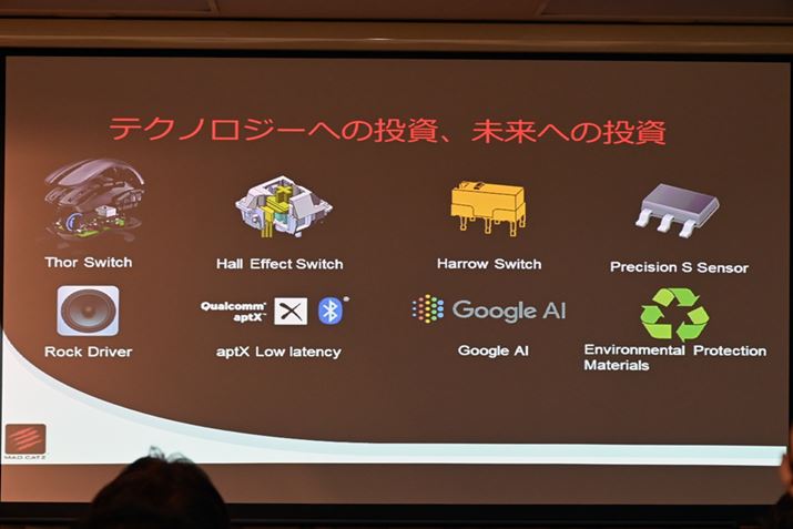 マウスやキーボードのスイッチ、ヘッドセットのドライバーユニットといった部分的なパーツはもちろんのこと、Bluetoothのコーデックや音声アシスタントといった最新テクノロジーへの投資も積極的に行っているという