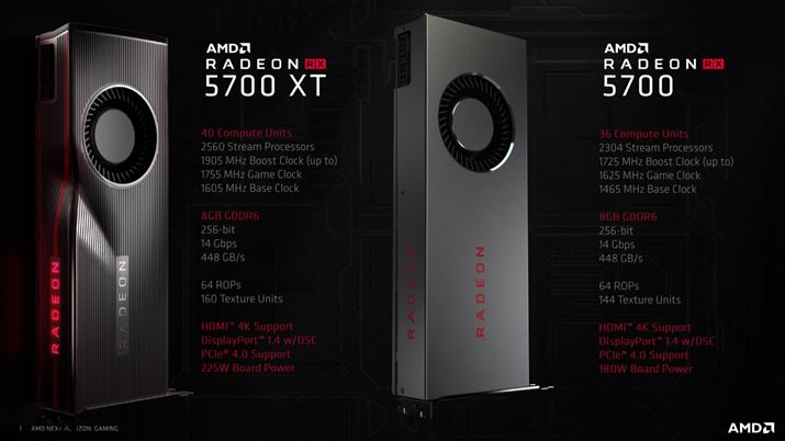 “Navi”ことRadeon RX 5700シリーズ。ミドルレンジ向けのRadeon RX 5700 XTとRadeon RX 5700の2モデルが投入される。いずれも、PCI Express 4.0に対応している