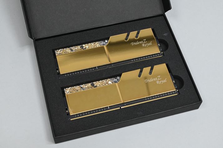 付属のメモリーはG.SKILL「F4-3600C16D-16GTRG (DDR4-3600 CL16 8GB×2)」。ゴールドの鏡面仕上げを採用したヒートスプレッダがかなりゴージャスだ