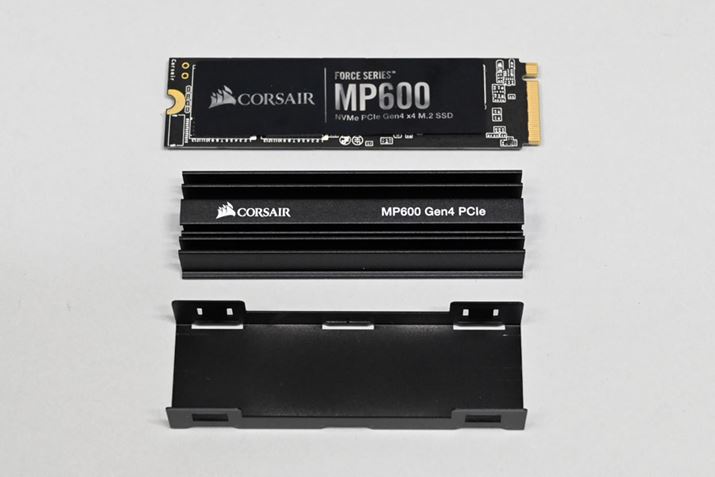 SSDは、PCI Express Gen4 x4のCorsair「MP600」の2TBモデルが付属していたので、今回はこちらをシステムドライブとして使用