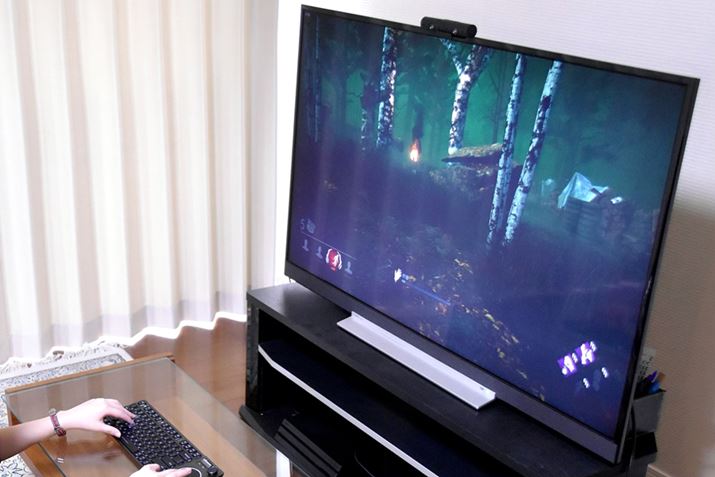 今回、ホラーサバイバルゲームであるDead by Daylightの画面をテレビに出力して、プレイしてみました。ノートPCと比べて、大画面では迫力が段違い!