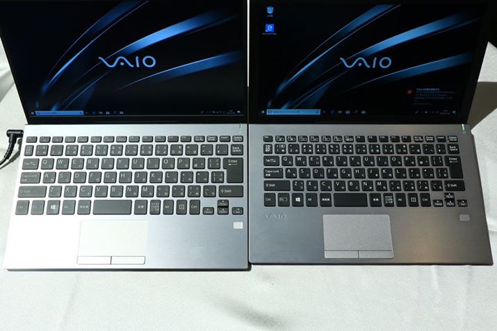 12.5型のVAIO SX12(左)と11.6型のVAIO S11(右)。2台を比べるとベゼルの太さとキーボードの左右のスペースが違う