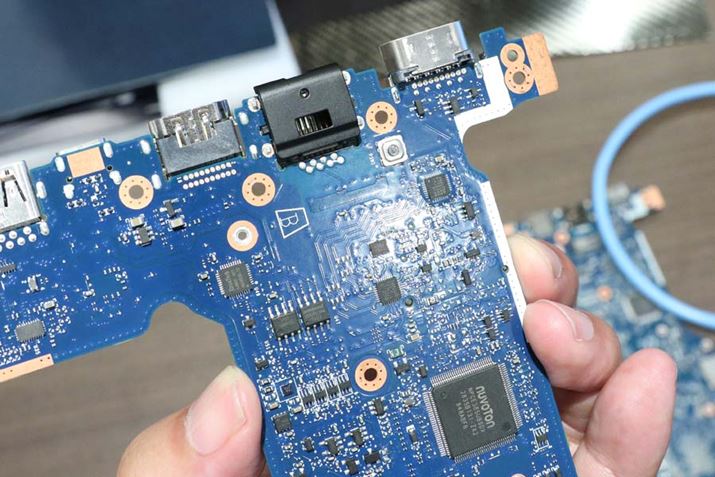 また、本モデルはフルピッチキーボードを搭載するため、本体左右のいっぱいまでキーボードが配置されるため、コネクターと干渉して本体の厚みが増してしまうのが問題だった。そこで、基板に実装する部品を見直し、レイアウトを再設計。コネクター部品も厚みが出ないように、有線LANコネクターのドアの一部に穴を開けて、干渉を防ぐなど、細かい部分までこだわっている。