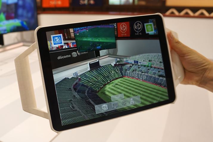 ラグビーワールドカップに合わせてNTTドコモは5Gのプレサービスを行う。写真は東京スカイツリーで展示されているVRコンテンツ視聴用の端末