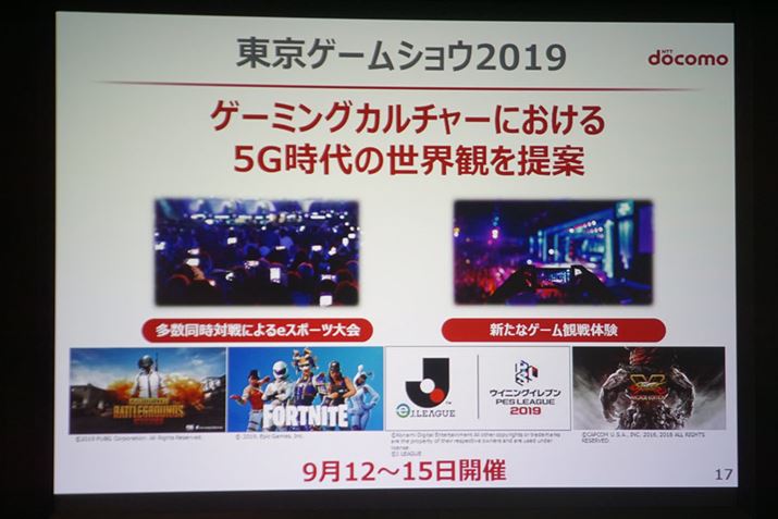 9月15〜20日の期間で開催される「東京ゲームショウ2019」でも、5G時代を先取りしたコンテンツが披露される予定だ(コンテンツのみで5Gネットワークは利用しない)