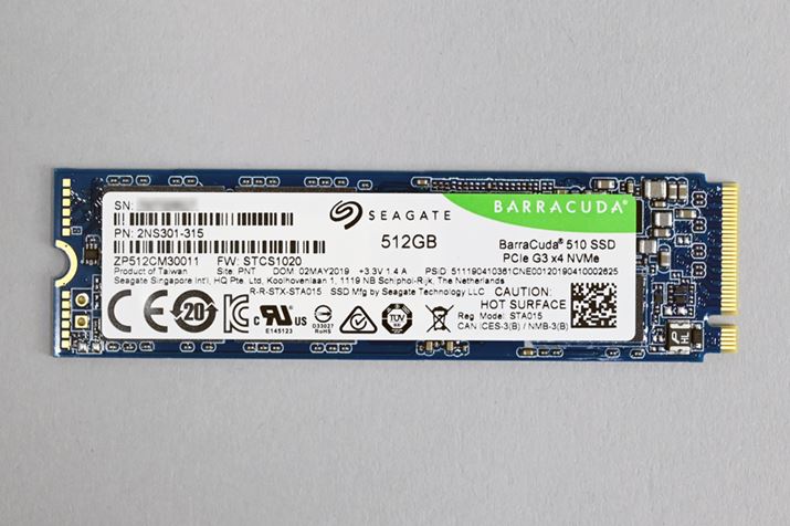 同じBarraCudaブランドを冠する製品としては、昨年末に2.5インチフォームファクターを採用する「BarraCuda SSD」がすでに発売されているが、BarraCuda SSDは250GB/500GB/1TB/2TBという4種類の容量ラインアップで幅広いユーザーを狙った製品だったのに対し、今回のBarraCuda 510は、厚みを抑えた片面実装で256GB/512GBという比較的小容量のラインアップしかないこと、消費電力を低く抑えた設計などから、ノートPCのシステムドライブとしての組み込みを想定したモデルといえそうだ。