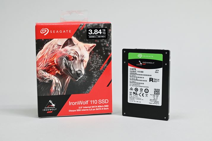 IronWolf 110は、ブランド名にもなっているメタリックカラーのオオカミをあしらったパッケージを採用。中身はオーソドックスな2.5インチSSDだ