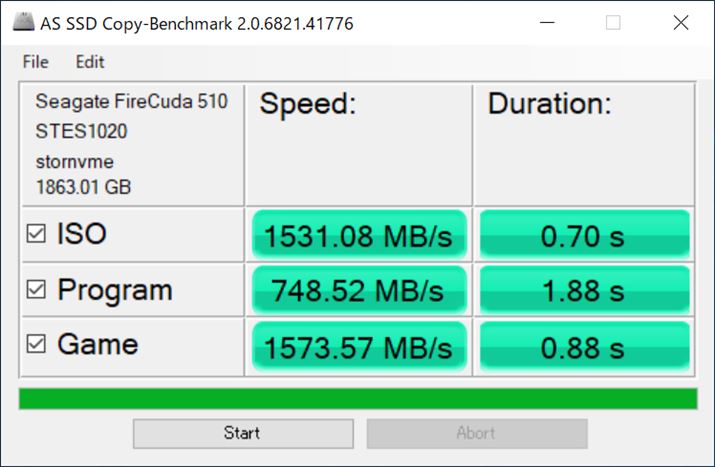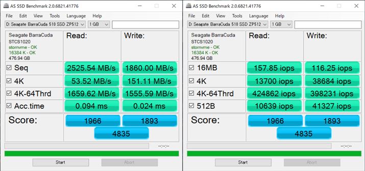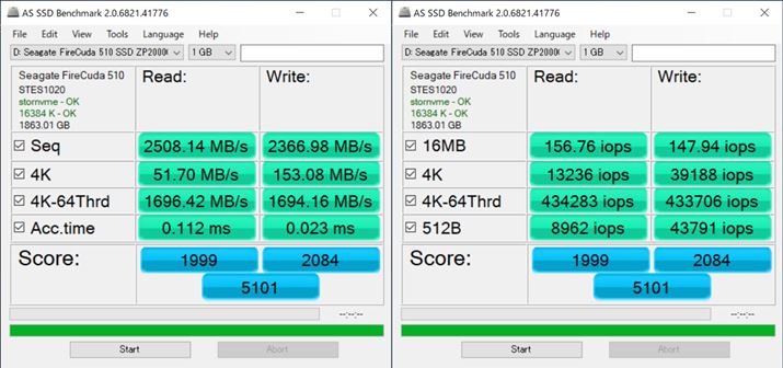 次は「AS SSD Benchmark 2.0.6821.417776」の結果を見ていこう。こちらも、おおむね「CrystalDiskMark 6.0.2」と傾向は同じで、NVMe接続タイプはFireCuda 510>BarraCuda 510といった感じだ。
