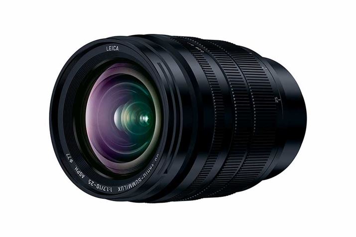 10〜25mm(35mm判換算:20〜50mm)の標準ズームレンズ。世界で初めて(レンズ交換式デジタルカメラとして。2019年8月22日発売予定)、超広角から標準のズーム全域でF1.7「SUMMILUX(ズミルックス)」の明るさを実現したという。