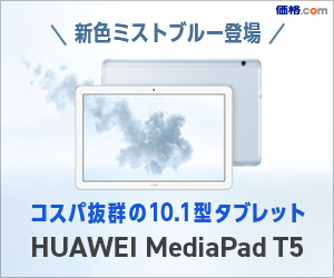 ファーウェイの「MediaPad T5」は、高精細な10.1型ディスプレイや高性能な8コアCPUを搭載しつつ、価格.com最安価格18,479円(Wi-Fiモデル)というコストパフォーマンスの高い人気のタブレットだ。