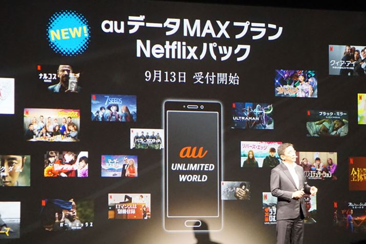 KDDI(au)は、2019年8月28日、同社の発表会「au UNLIMITED WORLD」において、新料金プラン「au データMAXプラン Netflixパック」を発表した。データ通信が使い放題で、Netflixのアカウントがセットとなっており、動画を思う存分視聴できるのが大きな特徴だ。あわせて、同料金プランとともに発表されたauの5G戦略についてもレポートする。