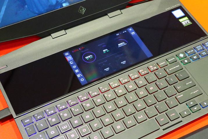 OMEN X 2S 15は15.6型のメインディスプレイと5.98型のセカンドディスプレイを搭載する2画面ノートパソコン。ゲームプレイ中にスマートフォンを利用しているユーザーが多いことに着目し、スマートフォンと同じように使えるセカンドディスプレイを搭載したという。キーボードの奥に搭載されたセカンドディスプレイはフルHDの5.98型。タッチスクリーンで、直感的な操作ができる。