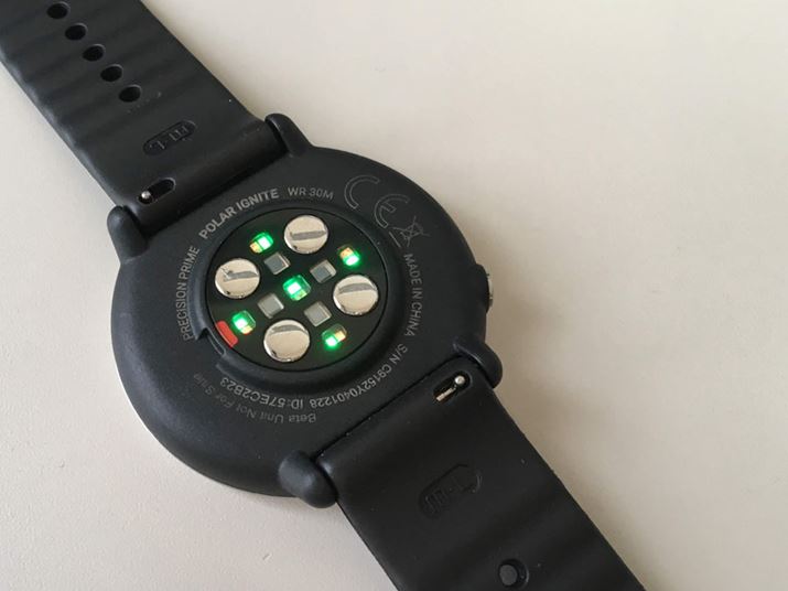 手首に当たる部分には、トップモデル同様の9つのLEDと、接触端子によるセンサーを装備。装着時に多少ズレがあっても確実に心拍数を計測する