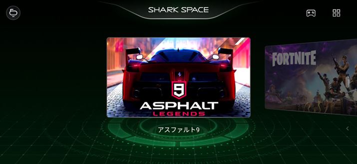 「Sharkスペーススイッチ」をオンにすると、ホーム画面が専用の「Shark スペース」に切り替わり、ゲームおよび登録したアプリしか起動できなくなる