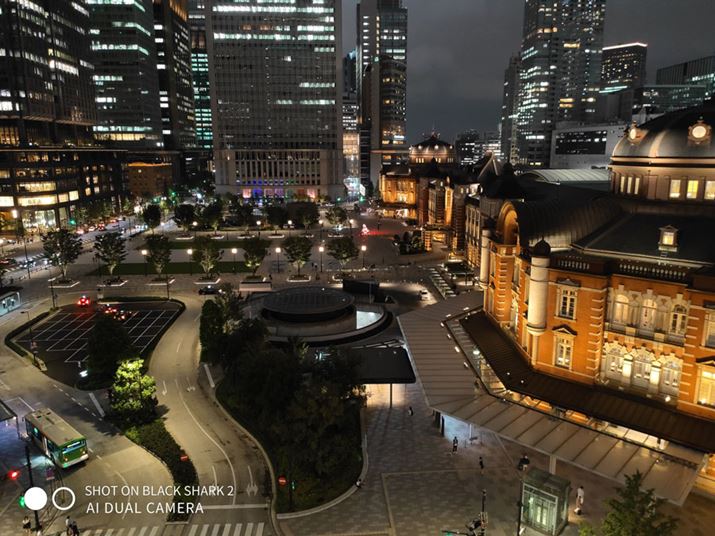 丸の内の夜景。カメラ性能をセールスポイントにした最新のハイエンド機ほどの明るさの写真ではないが、ノイズも少なめで、自然な仕上がりで仕上がりだ