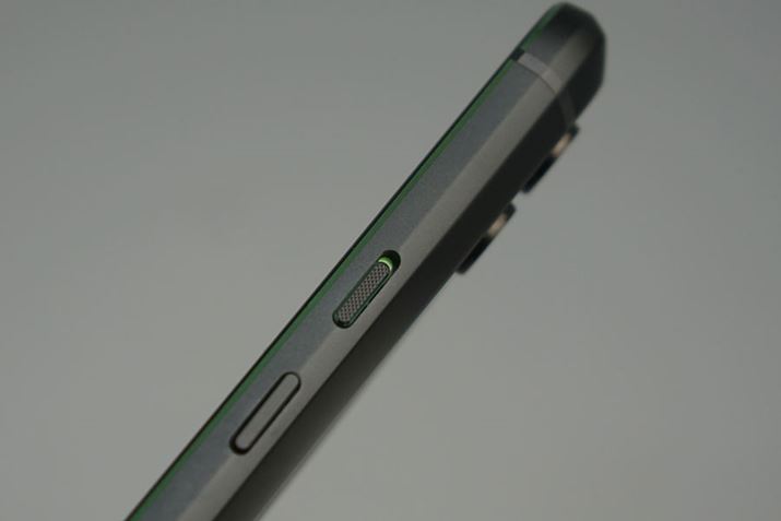 ボディ右側面に備わる「Sharkスペーススイッチ」は、ゲームプレイ時に、ほかのアプリなどの影響を受けにくくするもの。ゲームをプレイしない時はオフにしておく