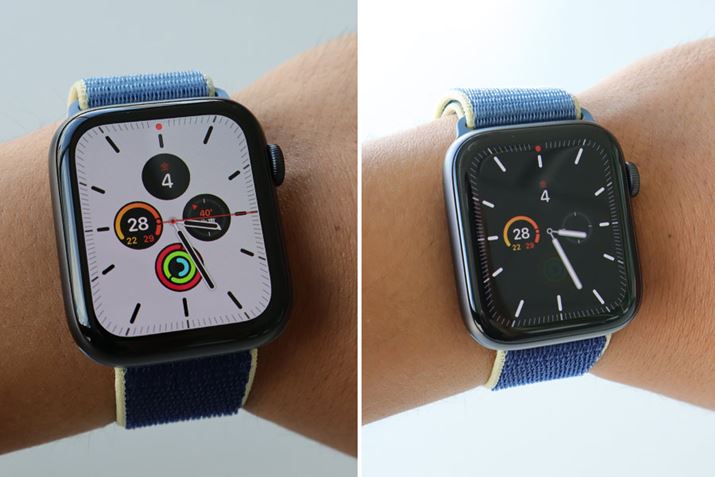 Apple Watch Series 5の一番の進化点はディスプレイだ。デザインやサイズはApple Watch Series 4から変わっていないが、ディスプレイが「常時表示Retinaディスプレイ」となり、文字通り常時表示されるようになった。