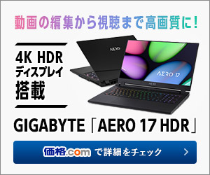GIGABYTE「AERO 17 HDR SA-7JP4020SO」は、超美麗な「4K HDRディスプレイ」だけでなく、クリエイティブな作業も難なくこなすパワフルな処理性能をしっかり兼ね備えていながら、価格.com最安価格は243,864円(2019年10月16日時点)とコストパフォーマンスにもすぐれている。クリエイターやゲーマーはもちろん、ハイスペック志向の一般ユーザーにも本機で「4K HDRディスプレイ」の高画質をぜひ堪能してもらいたい。