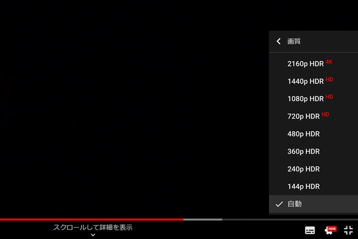 YouTubeやNetflixのストリーミング動画、ゲームなどHDR対応コンテンツは続々と増えている。「AERO 17 HDR SA-7JP4020SO」なら、これらのコンテンツを高画質で楽しめる。画像はYouTubeの画質設定だが、本モデルなら4K HDRコンテンツを最大「2160p HDR 4K」で再生可能だ