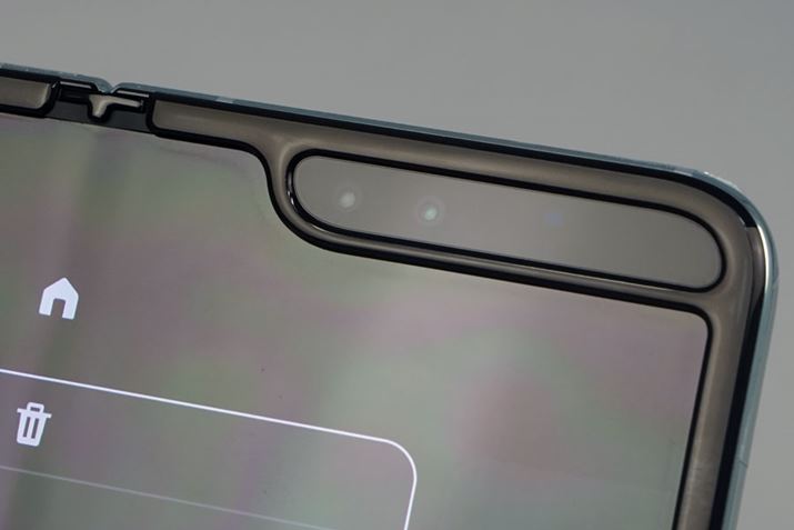 本機は、メインカメラ3基のトリプルカメラを採用するほか、折りたたみディスプレイのある内側のインカメラにデュアルカメラを、さらに外側のカバーディスプレイに備わるアウトカメラ1基の合計6基のカメラを搭載する。トリプルカメラのスペックを見ると「Galaxy S10」に近い。フロントカメラは約1,000万画素と、約800万画素のRGB深度カメラという組み合わせだ。もうひとつのアウトカメラは、外側の「カバーディスプレイ」を使った場合の自撮りや顔認証に使う。
