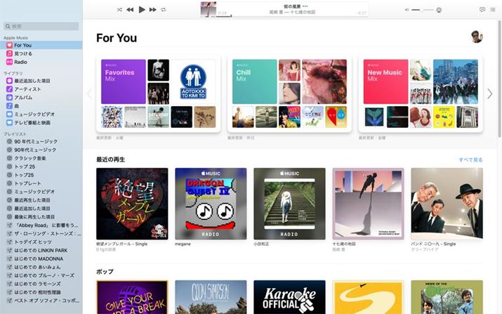 音楽管理はApple Musicが担う。左カラムには「For You」「見つける」「Radio」と、iPhoneのApple Musicでおなじみのメニューが並ぶ。ミニプレーヤー、歌詞表示などにも対応。iPhoneをメインに音楽を楽しんでいる人なら、iPhoneとMacでシームレスに音楽を楽しめるはずだ