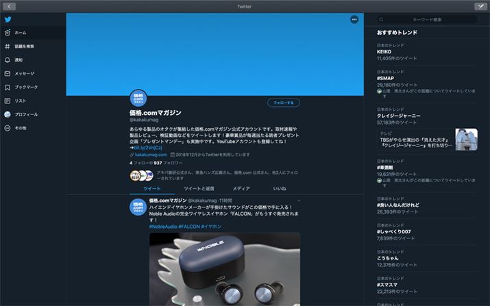 Mac CatalystでMac用アプリが用意された「Twitter」は、ブラウザー版よりも軽快に動作した。当然と言えば当然だが、UIはiPad用に似ていて、どこに何があるのかがわかりやすくて使いやすい。タイムライン、ツイート作成、動画再生など、ウィンドウ表示ができるのも便利だ。