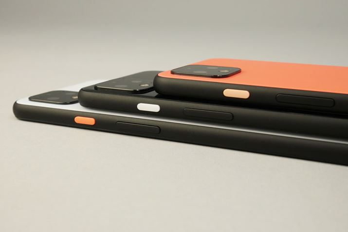 左からブラック、オレンジ(Pixel4)、ホワイト(Pixel 4 XL)