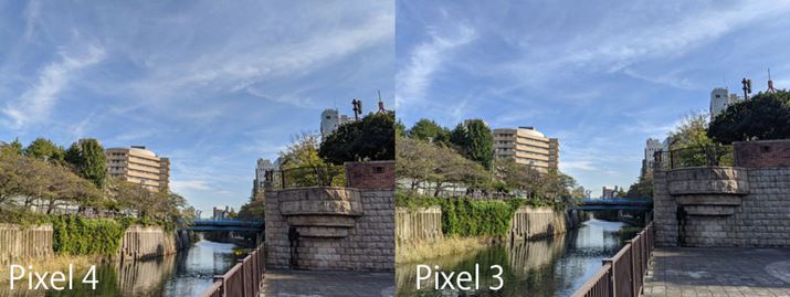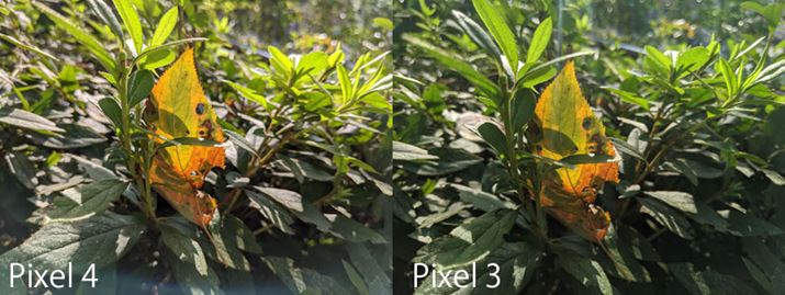 「Pixel 4」と「Pixel 3」の作例比較。「Pixel 4」のほうが、見ているものに近い自然な色だ