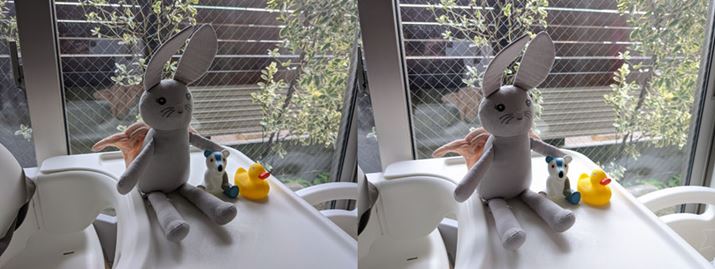 明るさを何も調節せずに撮影(左)すると少し暗かったので、全体の明るさと暗部の明るさを手動で変更して撮影してみた(右)。別々に調整できるので、すでに明るい部分を白飛びさせることなく、暗部の明るさだけを持ち上げられる