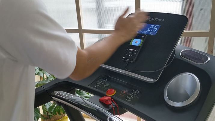 「Pixel 4」の発表会で実演されていた「Motion Sense」。ルームランナーで走っているときでも、「Motion Sense」で端末に触れることなく、楽曲をスキップできる