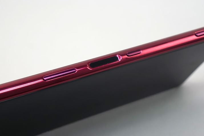 左側面には、ボリュームボタン、指紋認証センサー、電源ボタン、シャッターボタンが配置されている。Xperia XZ1の頃とは異なり、指紋認証センサーと電源ボタンは別になった