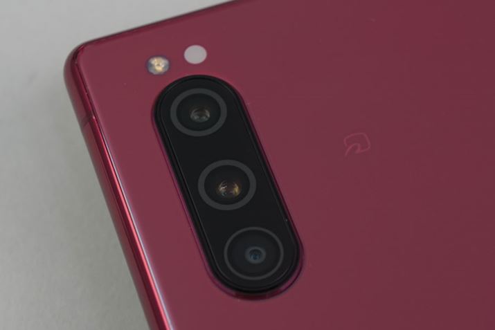 本機のメインカメラは、Xperia 1と基本的に同じものだ。超広角(16mm)、広角(26mm)、望遠(52mm)という焦点距離の異なる3基のカメラを組み合わせたトリプルカメラで、3.25倍の光学ズームに対応する。画素数はいずれも約1,220万画素だ。なお、スーパースロー動画撮影だけはXperia 1の毎秒960コマから毎秒120コマに変更されている。本機のカメラは、ソニーのデジタルカメラ「α」の技術がフィードバックされており、瞳AFや最大10fpsのAF/AE追従連写といった機能が搭載されている。また、広角カメラと望遠カメラは、光学式手ぶれ補正と電子式手ぶれ補正を組み合わせたハイブリッド手ぶれ補正を搭載している。