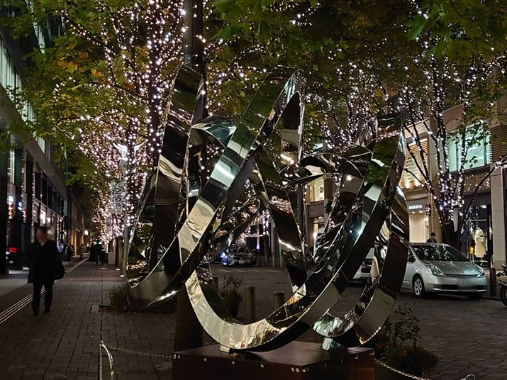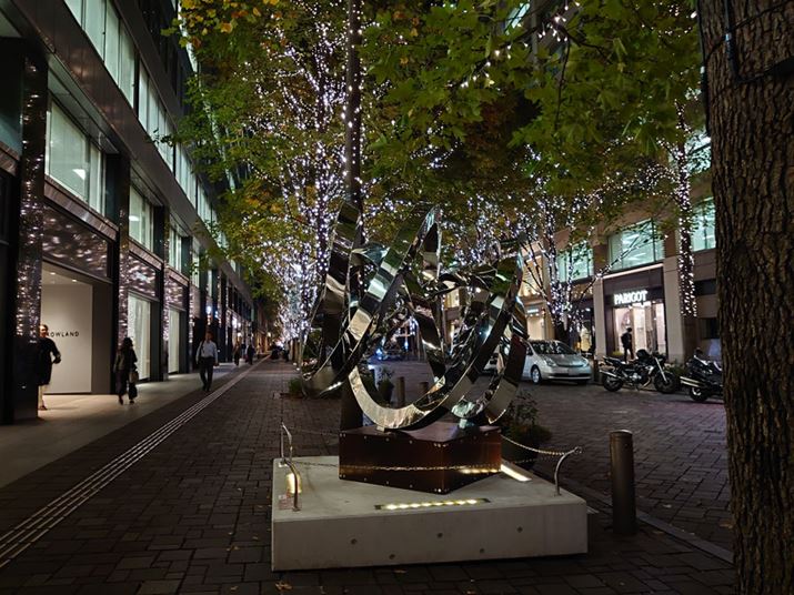 広角カメラで街に置かれたデコレーションを撮影。発色や解像度も文句ない