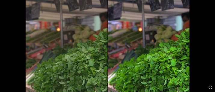 動画再生時の高画質処理「X1 for mobile」の効果を比較した図。左が、処理を切った状態、右が処理を動作させた場合のものだ