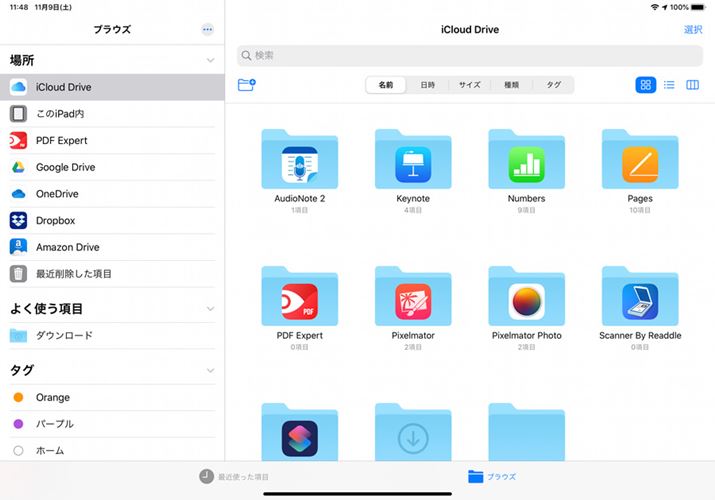 「ファイル」アプリは、iPad内や「iCloud Drive」に加え、「Google Drove」や「One Drive」「Dropbox」などのクラウドサービスとも連携させ、ファイルを集中管理する場所だ。