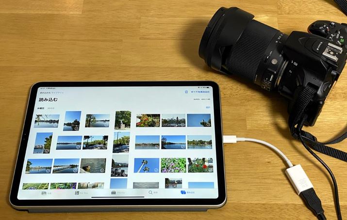 USB-C - USBアダプタを使ってデジタルカメラを接続すれば、カメラから直接写真や動画を読み込むこともできる