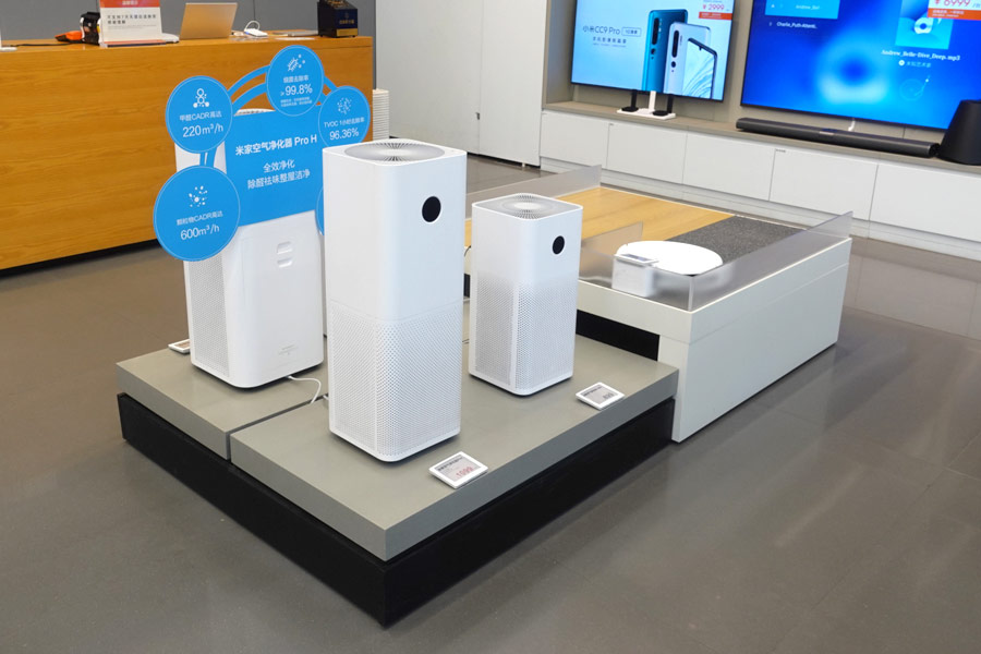 では、そんなスマホから家電まで幅広く製品展開するシャオミの旗艦ショップ「小米之家」の展示製品を、写真ですみずみまで紹介していこう(※画像は2019年11月27日時点のもの)。価格は写真の中の値札も参考にしてほしい。表示は人民元(RMB)で、1RMBは日本円換算で16円程度。表示価格×16で、おおむね日本円と考えればよいだろう。
