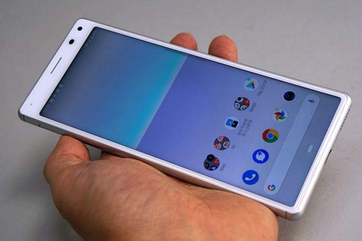 「Xperia 8」は、2,520×1,080のフルHD+表示に対応する約6.0インチの液晶ディスプレイを搭載する。このディスプレイは上位モデル「Xperia 1」や「Xperia 5」と同じ21:9の超縦長の縦横比となっている。ボディサイズは約69(幅)×158(高さ)×8.1(厚さ)mmで、重量は約170g。近ごろのAndroidスマートフォンとしては比較的コンパクトな部類に入る。本機のデザインは、Xperiaらしい上質なもので、機能面でもIPX5/8等級の防水仕様と、IP6X等級の防塵仕様に対応するなど上位モデルと比較して見劣りはしない。なお、FeliCa・NFCポートを備えるが、フルセグ・ワンセグチューナーは非搭載となっている。