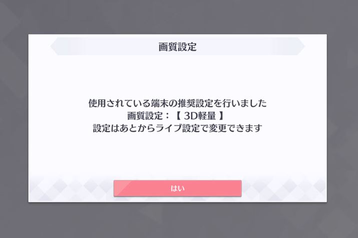 2019年9月に登場した、比較的新しい世代のゲーム「スクスタ(ラブライブ!スクールアイドルフェスティバル ALL STARS)」の画質設定は、「3D軽量」と判定された。動作はするが高い描画負荷には不向きというレベル