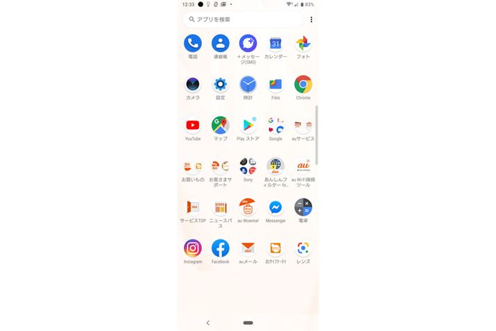 今回検証したau版「SOV42」のプリインストールアプリ。通信キャリア専用のアプリはあるものの、Xperia独自のものは少ない